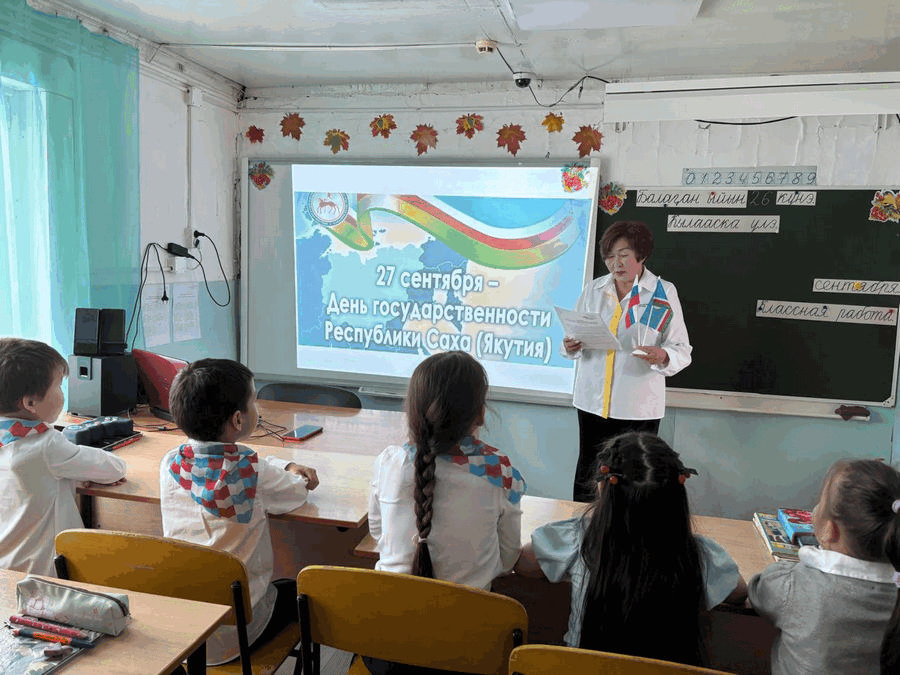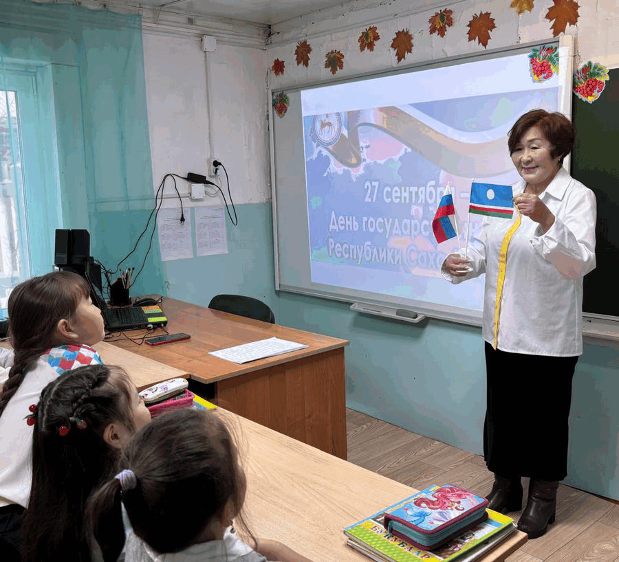 В нашей школе советник директора по воспитанию Горнакова Анна Ивановна провела в этот день классный час в честь этого события и обучающиеся школы приняли участие в акции: «Любимая моя Якутия», где воссоздали в своих рисунках флаг Республики Саха (Якутия).