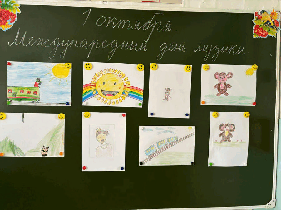 В нашей школе советник директора по воспитательной работе Горнакова Анна Ивановна организовала выставку рисунков: «Песня в рисунке», где обучающиеся изобразили героев из любимых детских песен.