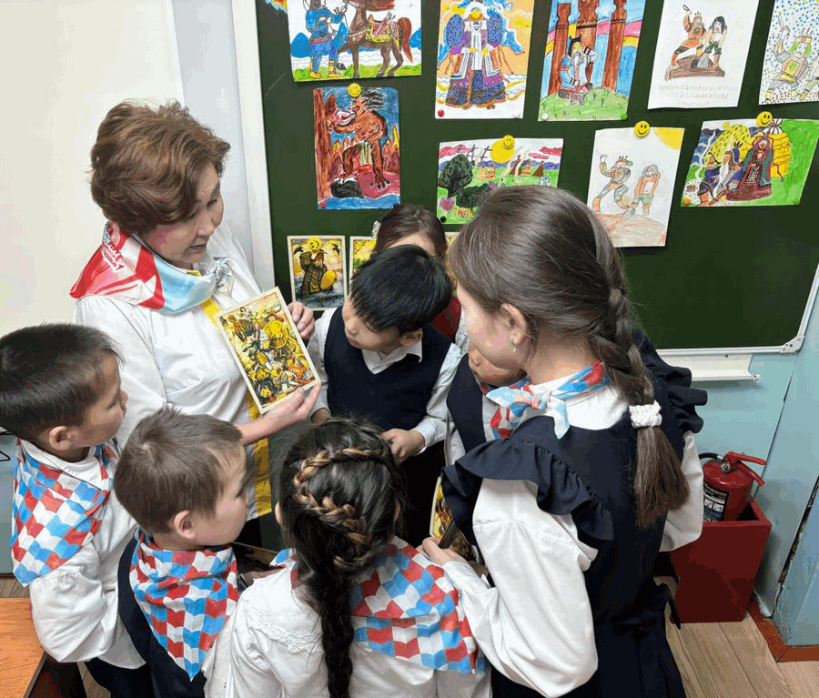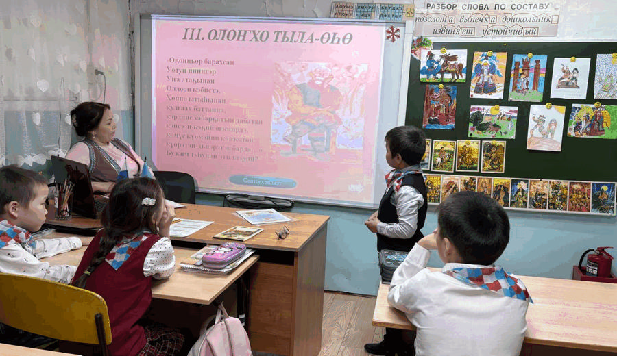 В нашей школе советник директора по воспитанию Горнакова Анна Ивановна и библиотекарь сельской библиотеки Самойлова Антонина Алексеевна провели библиотечный урок с целью ознакомления обучающихся с героическим эпосом Олонхо, об истории якутского эпоса, его сюжете, героях, исполнителях героических сказаний.