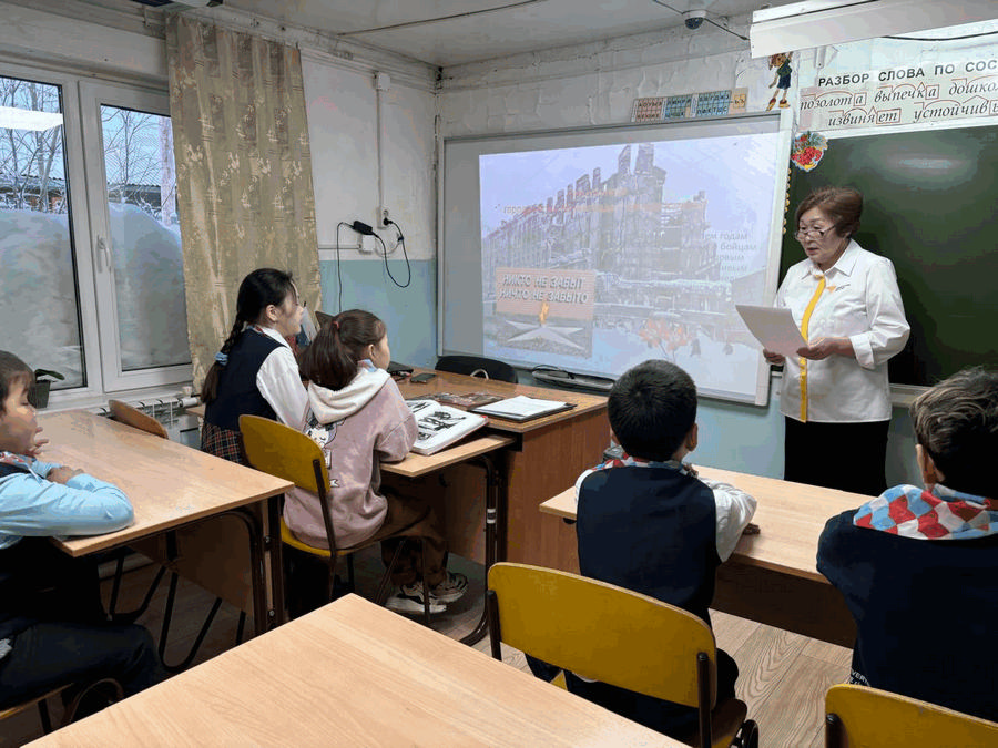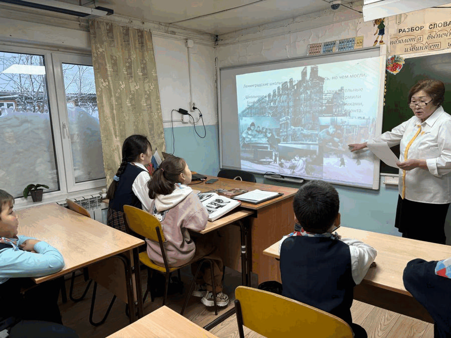 В классный час была приглашена библиотекарь Антонина Алексеевна Самойлова, которая рассказала обучающимся о блокадном Ленинграде.