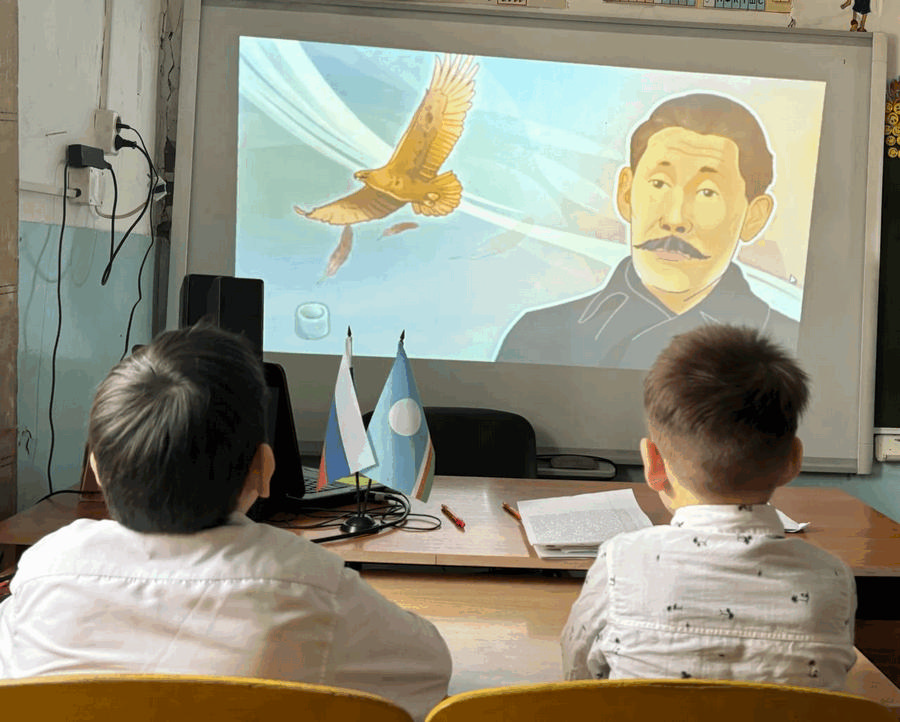 В этот день в нашей школе прошло внеклассное занятие «А. Е. Кулаковскай - Оксокуулээх Олоксой догордоьуута».
