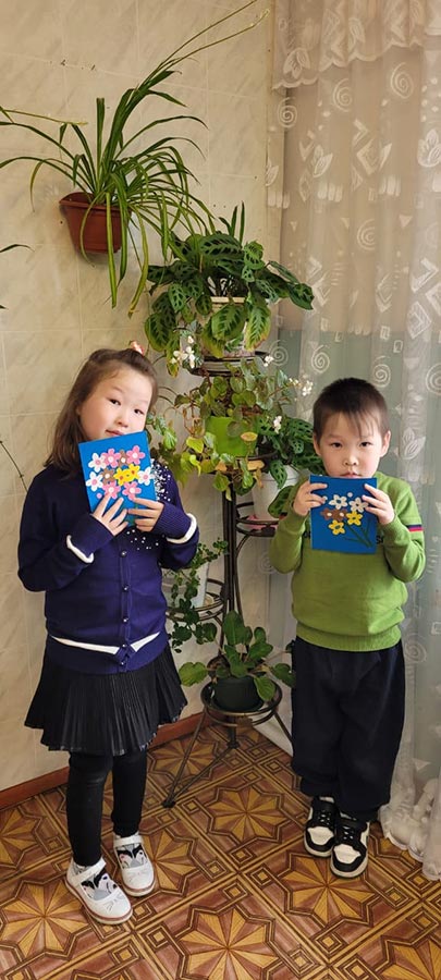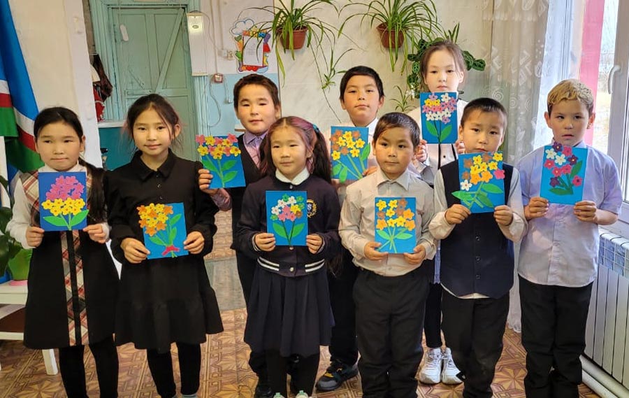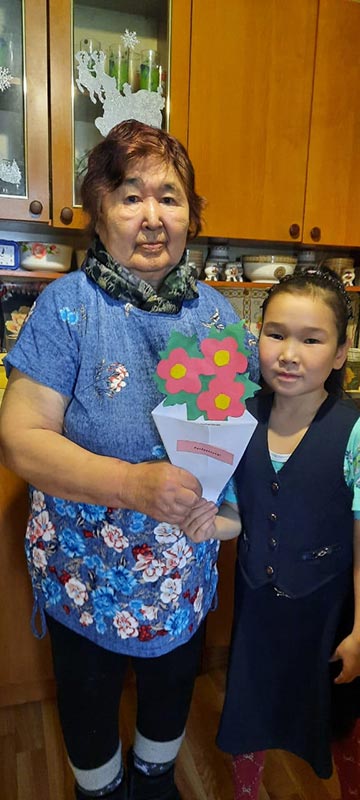 Дети сами поздравили и вручили поздравительные открытки, сделанные своими руками пожилым людям села Сиктях.