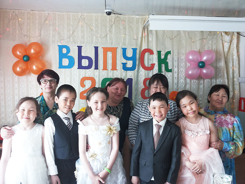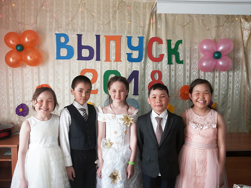 В этом году нашу начальную школу успешно окончили пять выпускников: Кыймина Алина, Попова Милена, Саввинова Лилия, Самойлов Артем, Сивцев Моисей. Из них трое окончили на одни «четверки» и «пятерки».